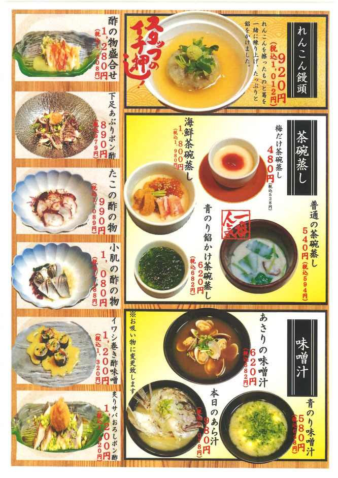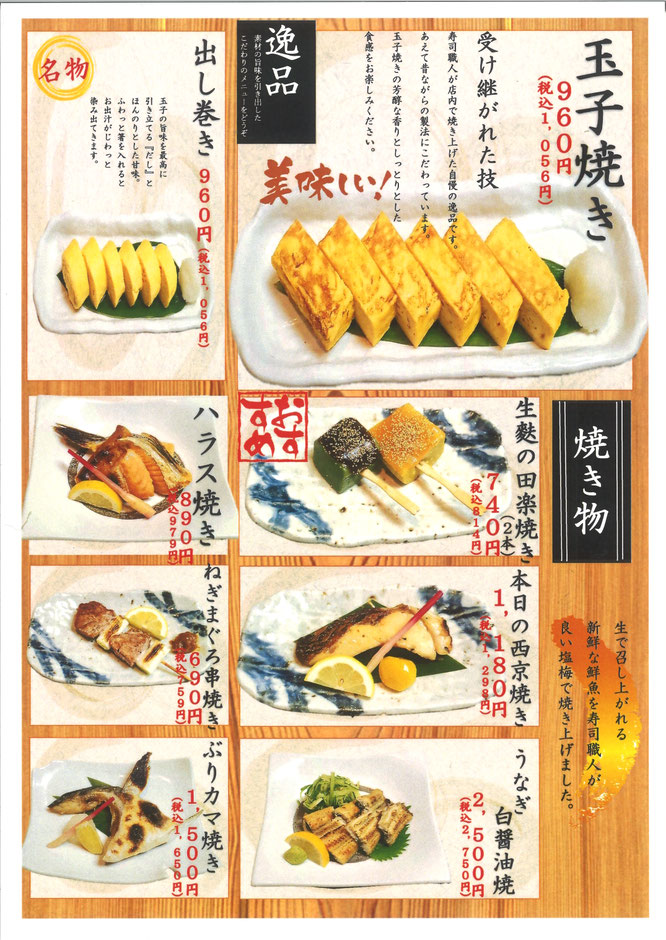 店内でのお食事は税抜価格より、10%消費税を頂きます